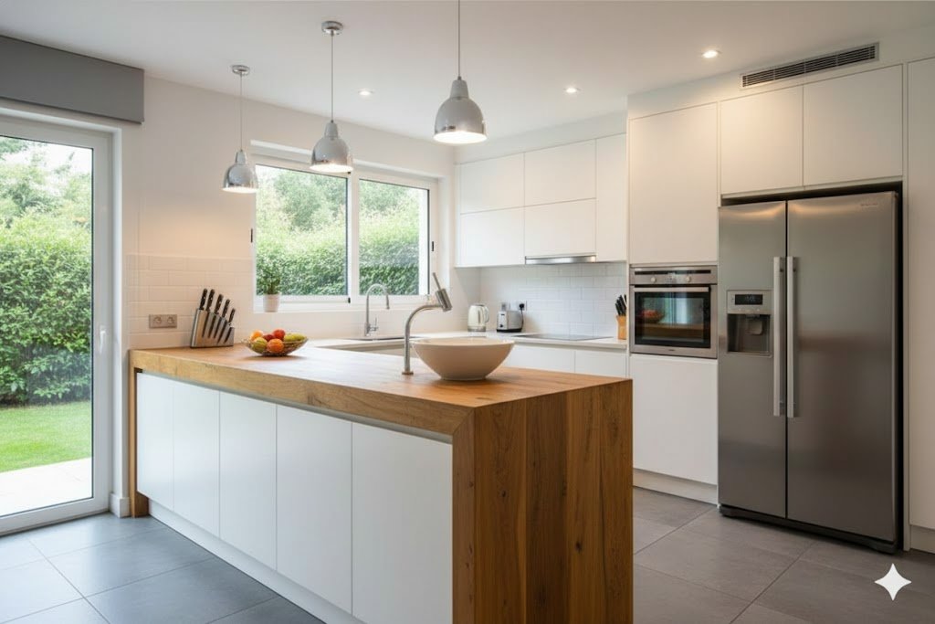 Produzimos balcões de madeira sob medida, ideais para cozinhas, áreas gourmet, ilhas e passa-pratos.
